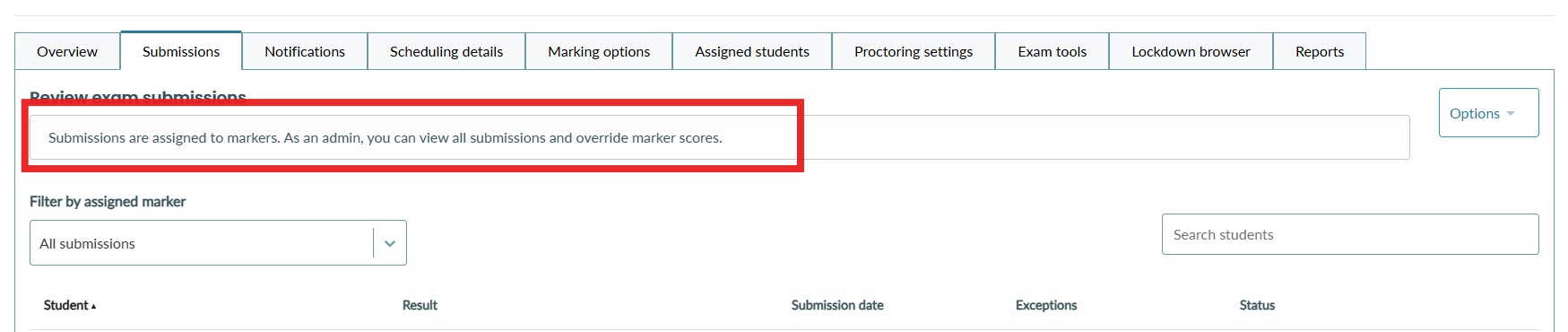 - If the students assigned to an exam sitting change, submissions are automatically redistributed to handle those changes.