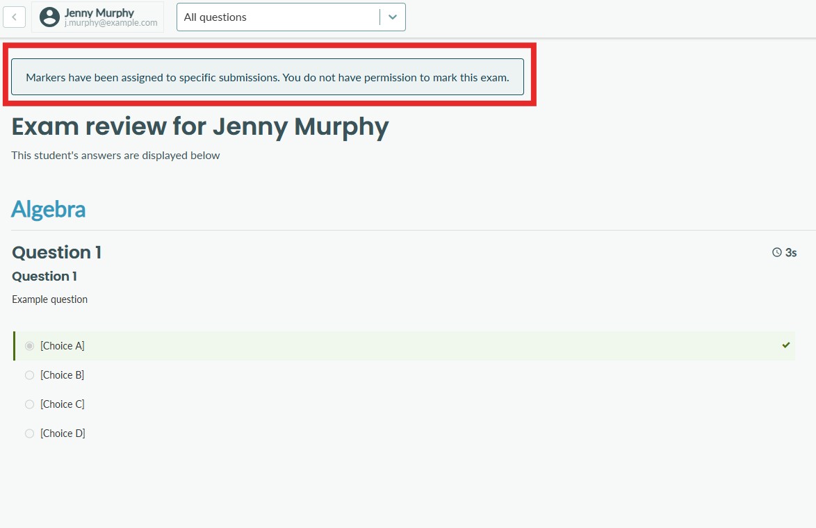 Markers will only have permission to mark submissions that are assigned to them. They can view other submissions but cannot mark them.